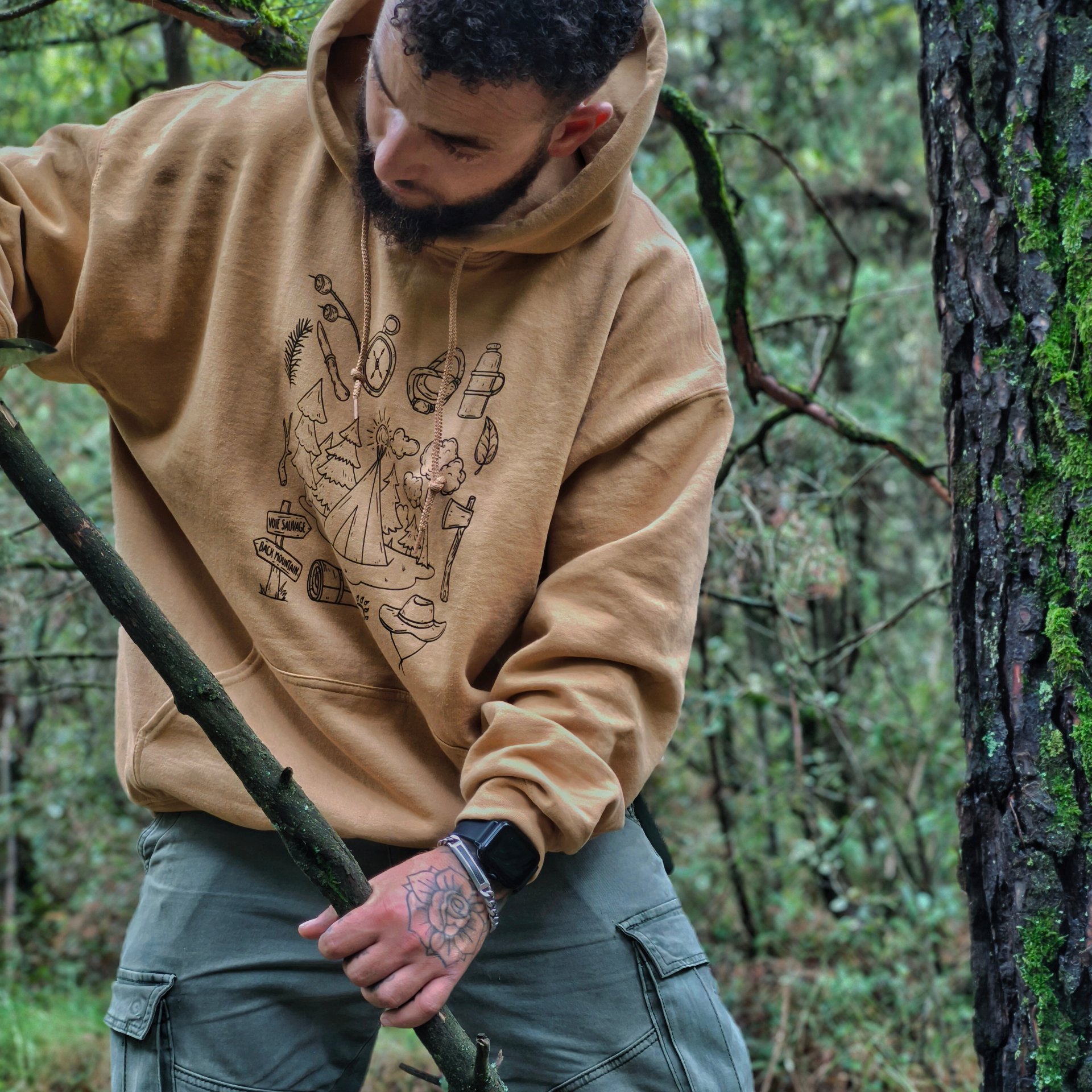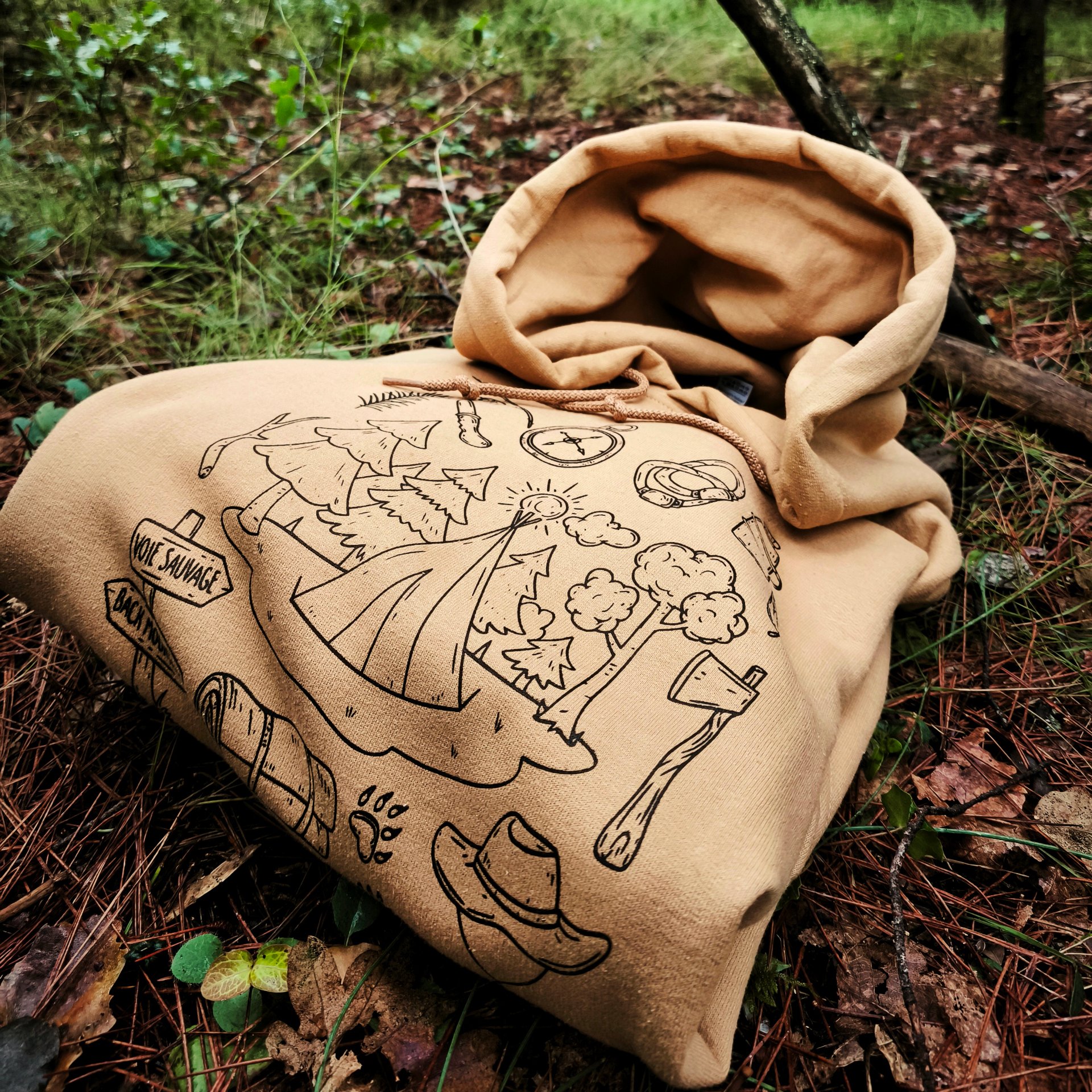 Fruit d’une collaboration unique avec Alexis Brus, ce pull retrace son aventure singulière en tant qu’ermite, vécue au rythme de la nature et des saisons. Plus qu’un vêtement, c’est un symbole de liberté et de retour à l’essentiel.